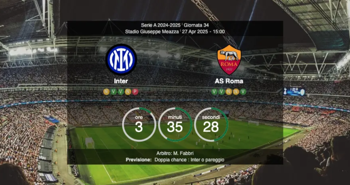 Domenica 27 aprile 2025, alle ore 15:00, lo stadio Giuseppe Meazza di Milano ospiterà il match tra Inter e Roma, valido per la 34ª giornata di Serie A. Un incontro che potrebbe rivelarsi decisivo per le ambizioni delle due squadre: l’Inter, in lotta per il titolo, e la Roma, determinata a consolidare la propria posizione europea.