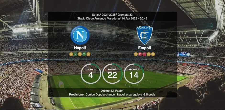 Considerando lo stato di forma delle due squadre e i precedenti storici, il Napoli parte favorito per la vittoria. Tuttavia, l’Empoli ha dimostrato in passato di saper sorprendere i partenopei, soprattutto in trasferta. La squadra di Conte dovrà quindi affrontare la partita con la massima concentrazione per evitare sorprese.