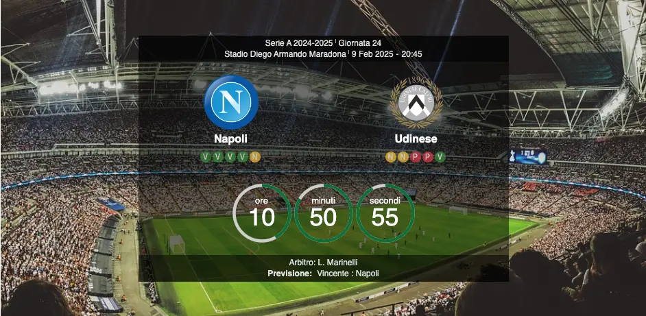 Considerando la superiorità storica del Napoli nelle sfide casalinghe contro l’Udinese e l’ottima tenuta difensiva dei partenopei, la squadra di Conte parte con i favori del pronostico. L’Udinese dovrà affidarsi alla fisicità di Lucca e alle ripartenze per provare a sorprendere la difesa azzurra. Tuttavia, con Lukaku in forma e una tradizione favorevole, il Napoli ha le carte in regola per ottenere un altro successo casalingo, con un possibile risultato di 2-0 o 3-1.