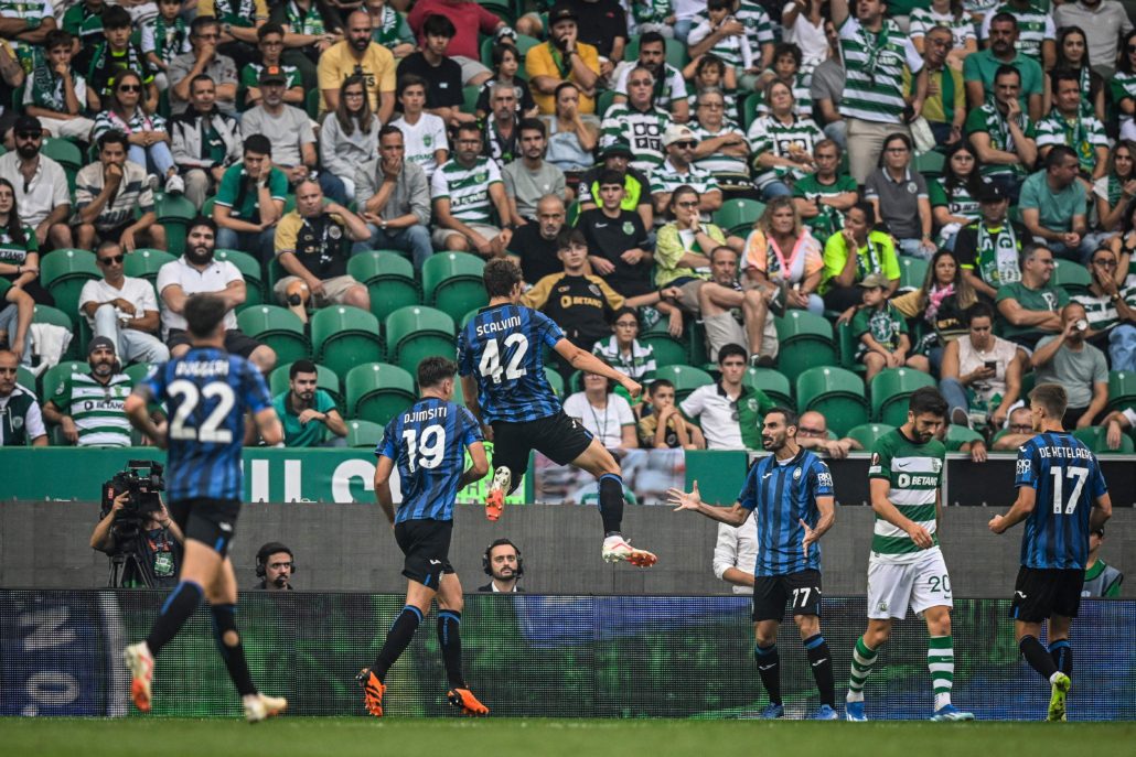 L’inizio della partita al José Alvalade è caratterizzato da un ritmo frenetico e un po’ caotico. Entrambe le squadre cercano velocemente di sfruttare le fasce e di cambiare gioco. Lookman spreca una grande occasione dopo una buona giocata di De Ketelaere, mentre Kolasinac non riesce a trovare la porta di testa. Dall’altra parte, Gyokeres è il giocatore più dinamico e attivo, ma la difesa della Dea, guidata da Djimsiti & Co., riesce a chiudere gli spazi e a impedire verticalizzazioni pericolose verso Musso. La Dea difende con aggressività e organizzazione, aumenta l’intensità nel centrocampo e costringe lo Sporting a ritirarsi e a giocare in contropiede. De Roon calcia alto dal limite, mentre i nerazzurri commettono qualche errore nelle ripartenze, ma Djimsiti e Kolasinac rispondono bene su un paio di contropiedi portoghesi. La Dea continua a premere, attaccando con numerosi giocatori, e intorno alla mezz’ora di gioco sblocca la partita grazie a Scalvini, che sfrutta un’azione avviata da Koopmeiners e si posiziona nel posto giusto per segnare su cross di Zappacosta. Un tap-in che concretizza il dominio della squadra nerazzurra e apre ulteriori spazi. Lookman spreca a due passi dalla porta dello Sporting, poi impegna Adan con un tiro di destro e serve a Ruggeri un assist perfetto per il raddoppio. Questo gol chiude il primo tempo e porta meritatamente la Dea in vantaggio di due reti negli spogliatoi.